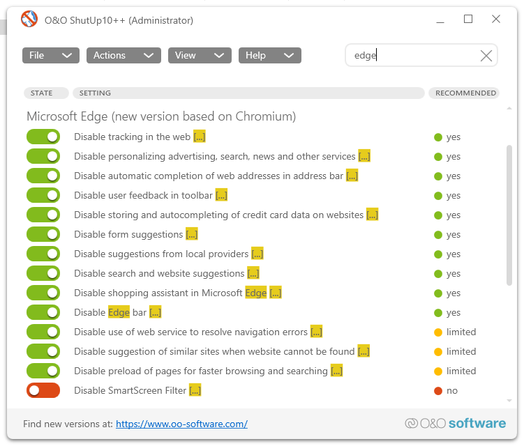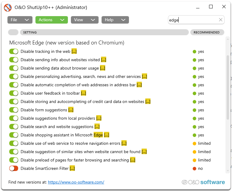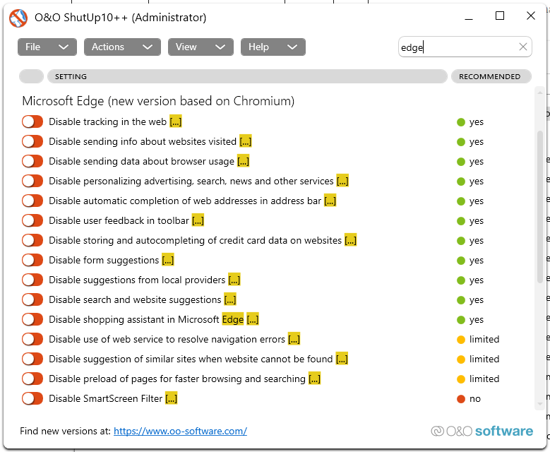 I decided to review my O&O Shutup10++ settings. The first thing I did was disable every setting that I had related to Edge: