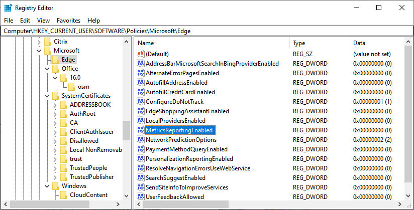 To elaborate, this particular setting in O&O Shutup10++ corresponds to the regkey value MetricsReportingEnabled (a REG_DWORD type with data value of 0), located in COMPUTER\HKEY_CURRENT_USER\SOFTWARE\Policies\Microsoft\Edge.